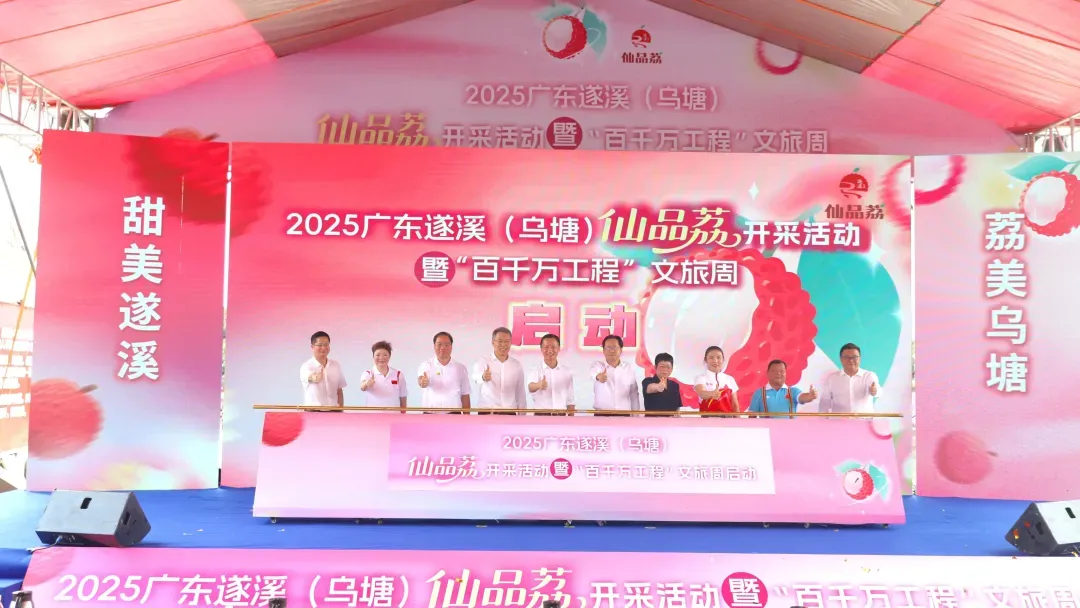 广东遂溪(乌塘)仙品荔开采活动暨“百千万工程”文旅周启动,领跑广东荔枝销售“第一棒”。