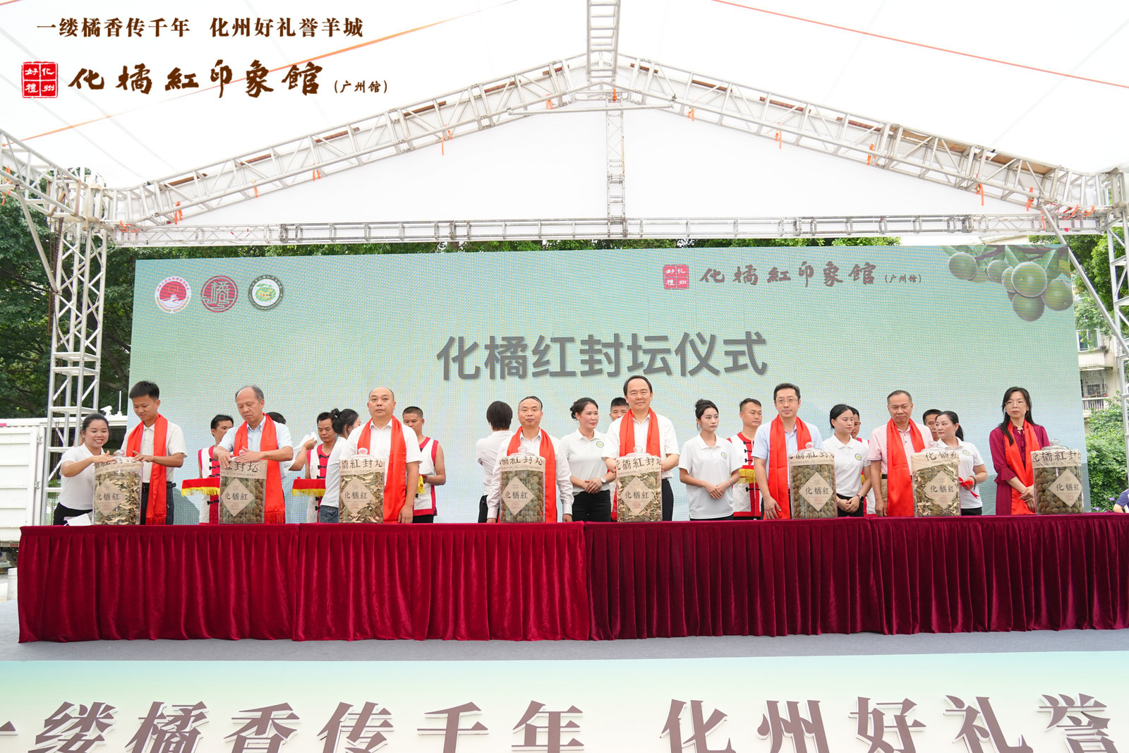仪式中,最具传统韵味的环节莫过于“有喜事,封一坛化橘红”的封坛仪式。在八位嘉宾的共同见证下,上品化橘红被郑重封坛。